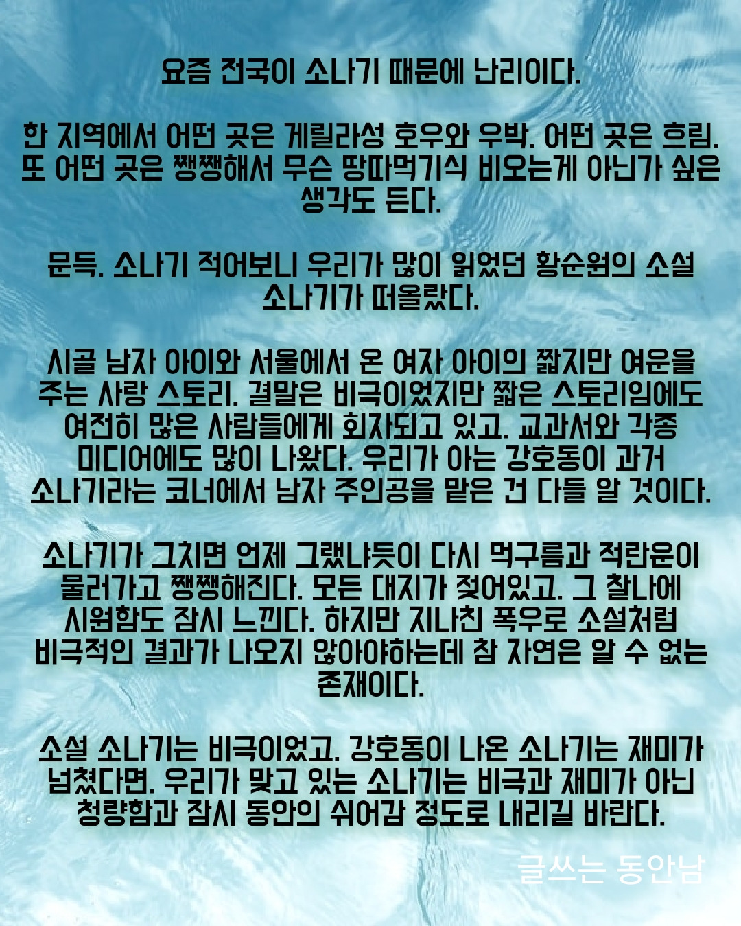 소설 소나기. 강호동의 소나기. 우리가 맞는 소나기를 적어보다.