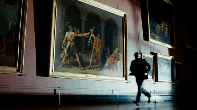 영화 속의 텅빈 야간 전시실(살인 사건이 일어난 곳으로 달려가고 있는 주인공)
