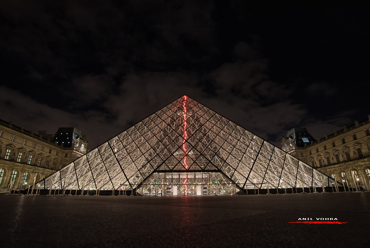 루브르 박물관 앞의 유리 피라미드는 어디선가 본 듯한 형태다. 우리 동네 아파트 지하 주차장 입구에 비막이용으로 설치되어 있는 유리덮개! 형태만 놓고 보면 특별할 것이 없어 보인다. 그러나 루브르 앞의 피라미드가 유독 강렬한 상징이 된 이유는, 그것이 단순한 건축물이 아니라 역사와 현대, 권위와 질문이 만나는 지점에 놓여 있기 때문이다. 이 유리 피라미드는 중국계 미국인 건축가 I. M. 페이가 설계해 1989년에 완공되었고, 루브르의 새로운 정문 역할을 한다. 투명한 구조는 과거를 가리지 않으면서도, 박물관으로 들어가기 위해 반드시 통과해야 하는 관문이 된다. 보이지만 쉽게 읽히지 않는 이 구조는, 그 자체로 해석을 요구하는 장치다.