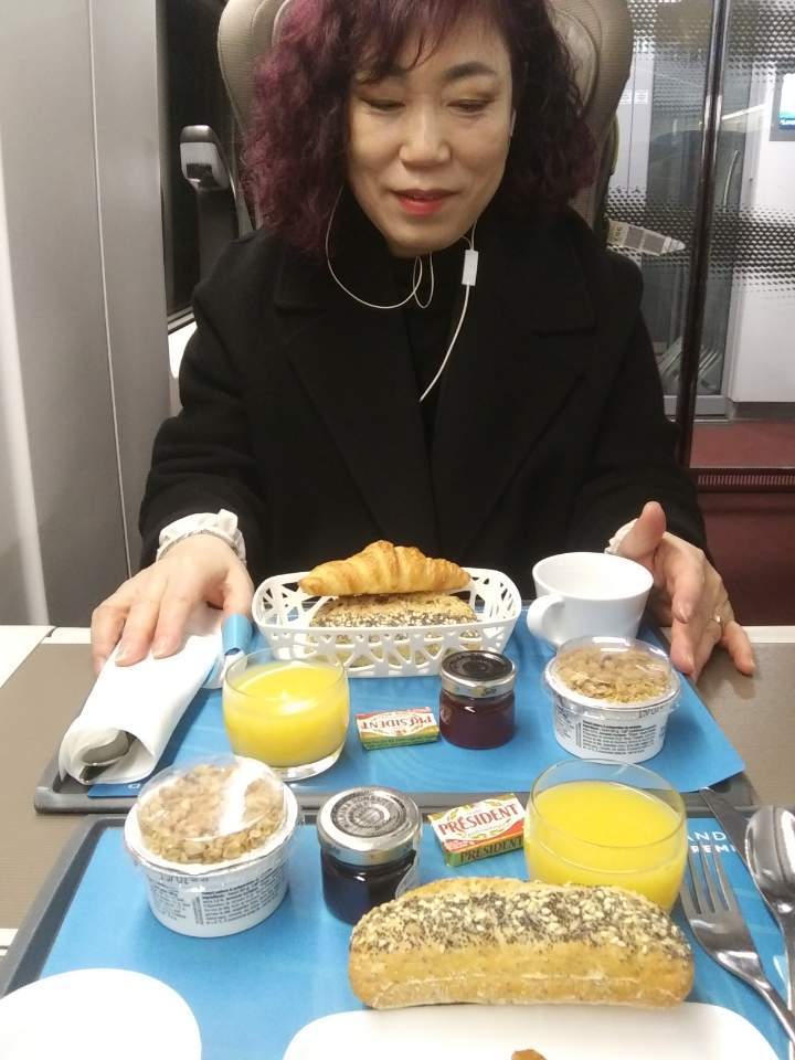 -유로스타(고속열차)안에서 제공한 간단한 조식을 먹을 것이다.-