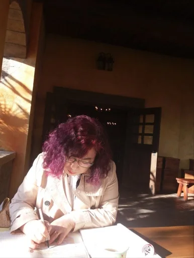 (사진 2) 디즈니랜드 씨의 카페에서 잠시 글을 쓰고 있는 필자.