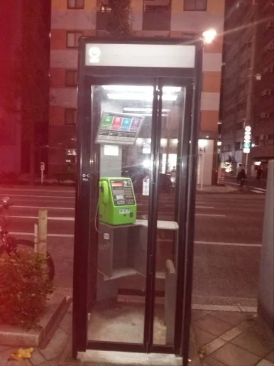 사진 2) 공중전화 부스와 연녹색의 공중전화가 메가폴리스의 도쿄와는 매우 대조적이었다. 공중전화 부스마저도 쓸쓸함이 묻어 있는 것 같았다.