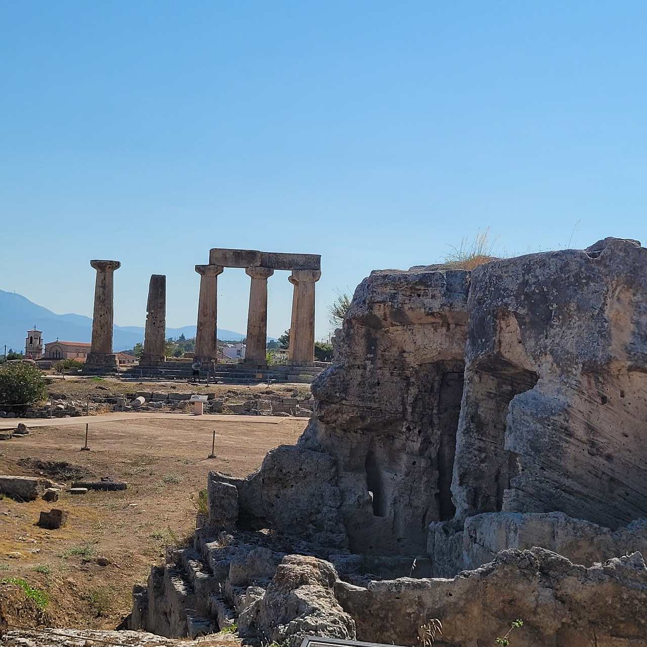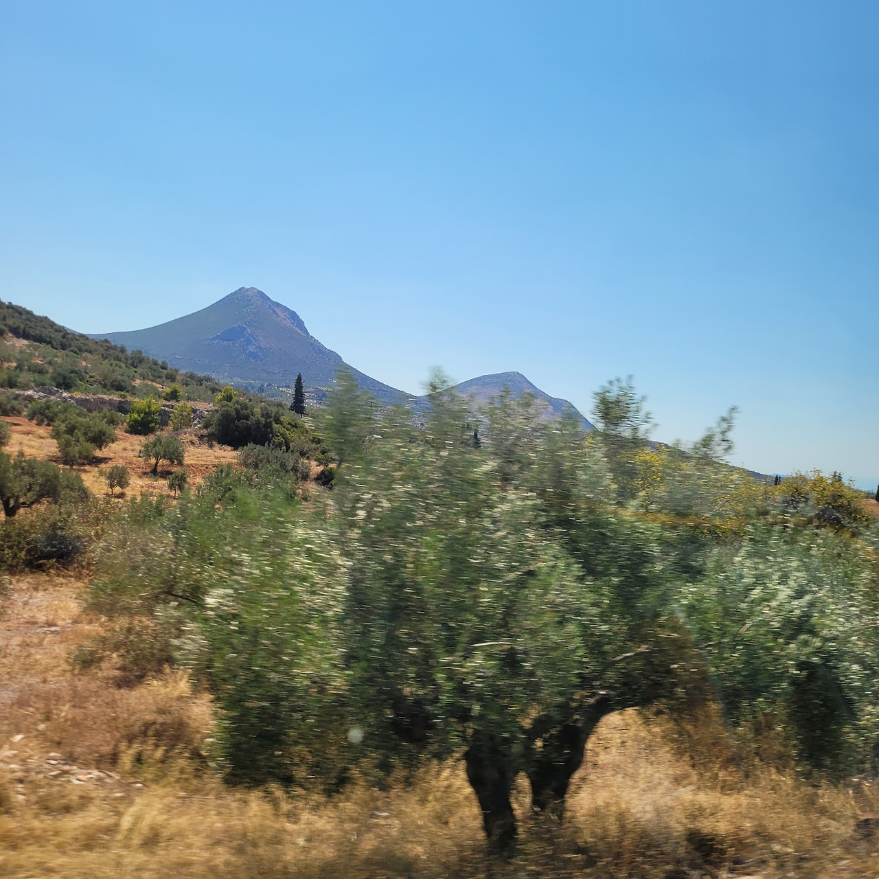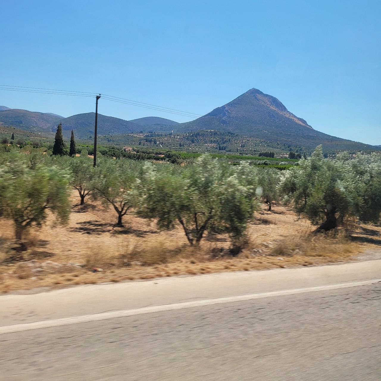 긴 해안선과 돌산 사이를 가르며 한참 달리던 버스는 마침내 고대 고린토 유적지에 도착했다. 창밖으로는 은빛 잎을 흔드는 올리브 농원이 펼쳐졌고, 멀리 삼각형으로 솟은 바위산의 윤곽이 도시를 내려다보고 있었다. 아크로코린토스. 돌처럼 단단한 그 산은 이 도시의 배경이자 방패였다.