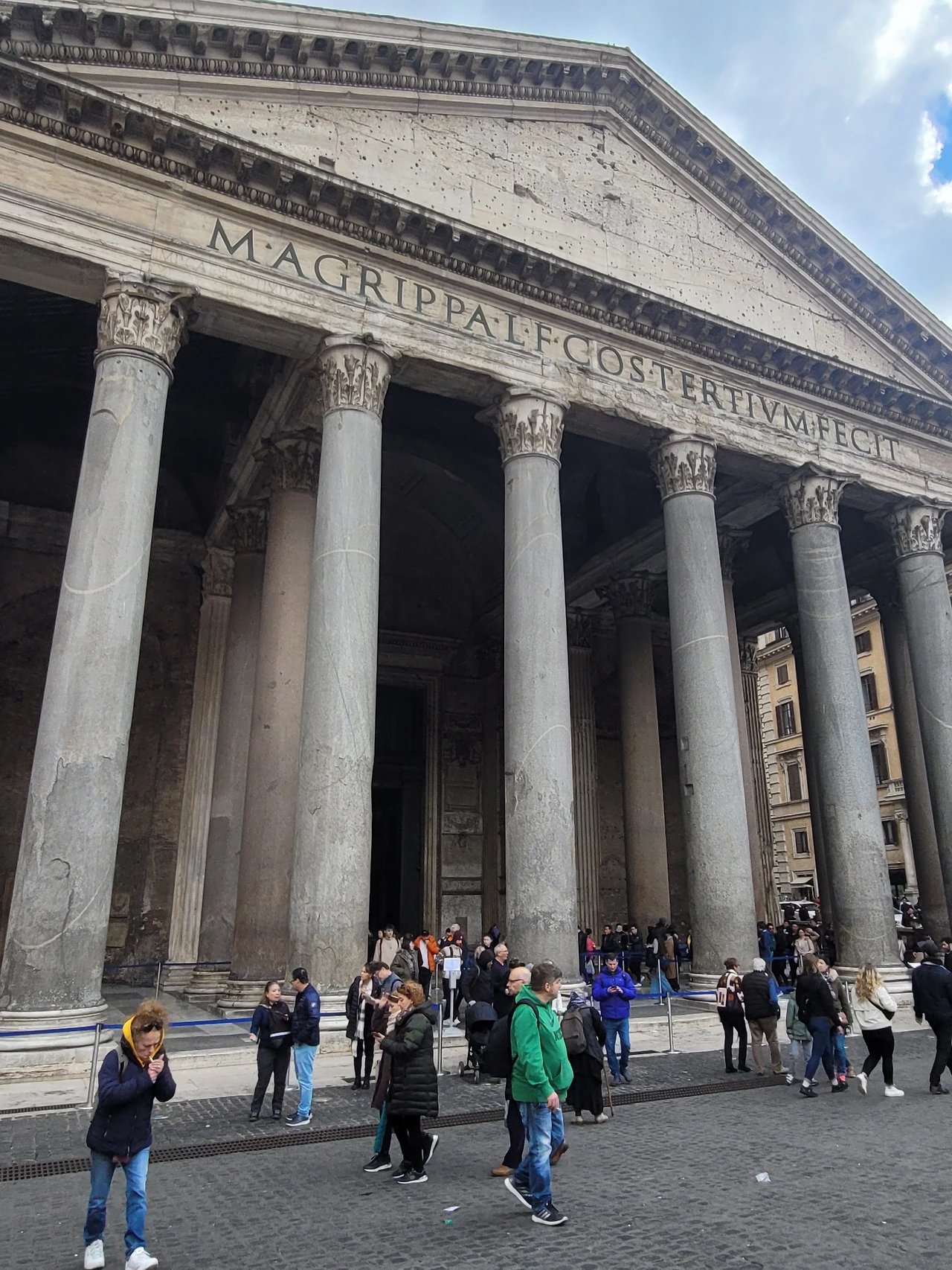 판테온의 정면을 바라보면 먼저 눈에 들어오는 것은 거대한 기둥들이다. 이 기둥들은 고린토식(Corinthian order) 양식으로 만들어졌다.