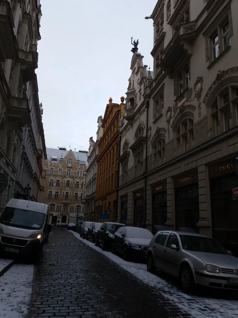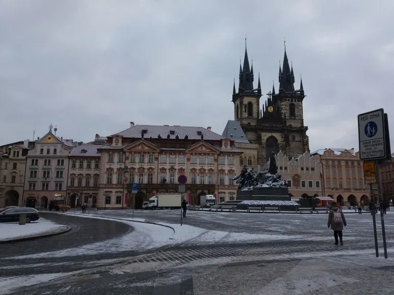 사람이 없는 아침 구시가 광장에 서니, 시간도 발자국 소리를 낮추어 걷는 듯했다. 고딕의 첨탑은 여전히 하늘을 향해 날카롭게 솟아 있고, 얀 후스의 동상은 눈을 뒤집어쓴 채 묵묵히 광장을 지키고 있었다. 이곳에서는 역사가 박물관 속에 있지 않았다. 살아 있는 도시의 공기 속에, 여전히 숨 쉬고 있었다.