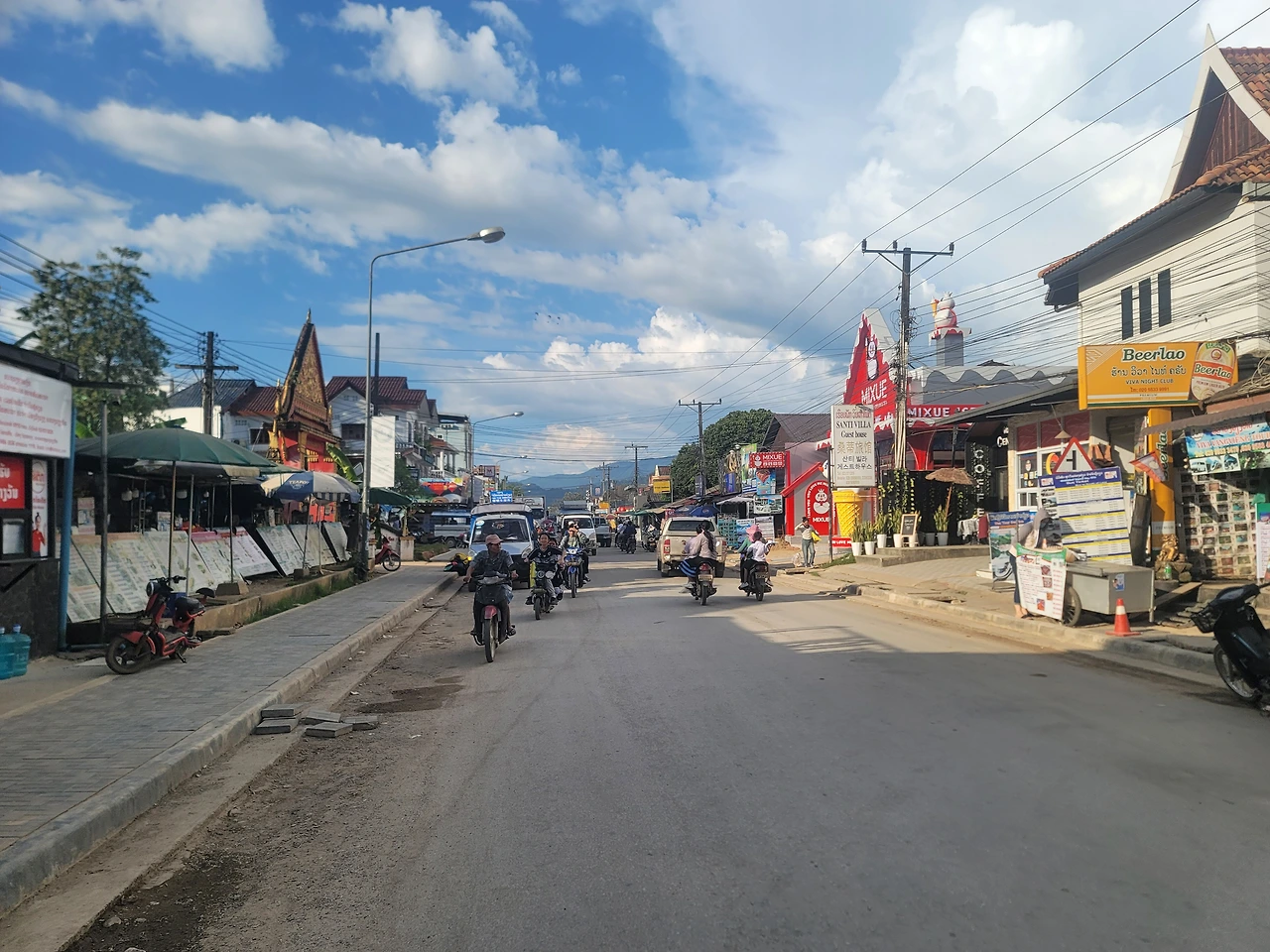 코를 막고 눈을 감아가며 방비엥에 도착했다. 방비엥은 황무지에 세워진 도시 같았다. 포장이 덜 된 길과 나무로 지어진 건물들, 양철지붕은 미국 서부 개척 시대의 작은 마을을 닮아있었다. 뛰어다니는 아이들과 오토바이들, 자동차의 경적이 거리를 분주하게 만들었다. 묘한 들뜸이 번져있는 낯선 거리에 툭툭은 멈췄고 나는 흙먼지를 지그시 누르며 발을 내디뎠다.