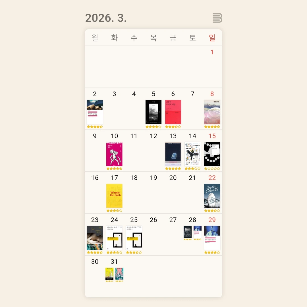 3월에는 총 18권의 책을 읽었다. 이번 달에는 2월에 비해 많이 읽지는 못했지만, 원서를 2권 읽고 평소 안 읽던 비문학도 좀 읽어서 나름 만족스러운 숫자다. 거기에 더해 하반기 패밀리데이에서 산 책도 2권 빼고 다 읽어서 뿌듯하다. 그럼 읽은 책마다 한줄평을 남기고, 추천 책은 *로 표시하겠다.