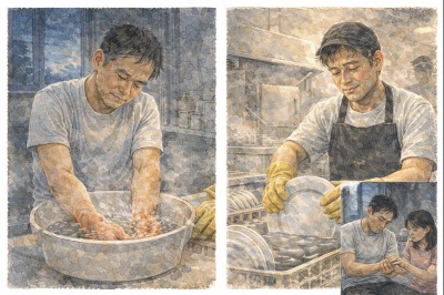 50 평생 그러던 차에 이번에는 제대로 닦는 디시와셔의 수업길로 들어선 것 같았고, 남들이 듣기에는 웃음이 나올 일이지만 내게는 아직도 더 닦아야 할 인생의 여로에 들어선 것처럼 느껴졌다. 한국에 있을 당시 간혹 외국에 간 사람들의 이야기를 듣거나 책에서 읽다 보면 잠시라도 디시와셔를 안 해 본 사람이 없을 정도였기에, 그저 집에서 하는 설거지보다 조금 더 힘들겠지 정도로만 생각했는데, 이곳에 와서야 진짜 디시와셔의 참맛을 알게 되었다.