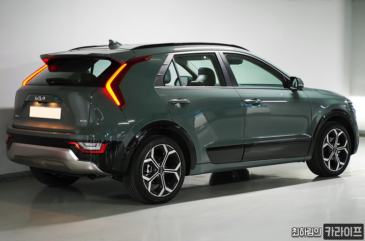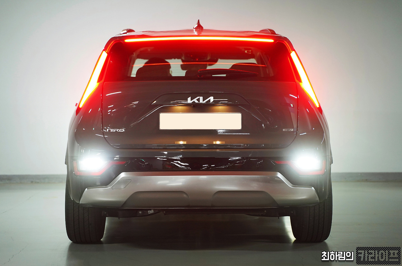 반면 해치 게이트는 특별한 기교를 부리진 않았다. 번호판이 부착되는 위치 주위에는 사다리꼴을 본뜻 형태로 마무리했으며, 그 위에 새로운 기아 엠블럼을 적용했다. 좌측 하단에 새로운 폰트의 니로 엠블럼을 부착하고, 우측 하단에 하이브리드를 나타내는 HEV 엠블럼을 부착했다. 모두 K8에 적용됐었던 디테일이다.