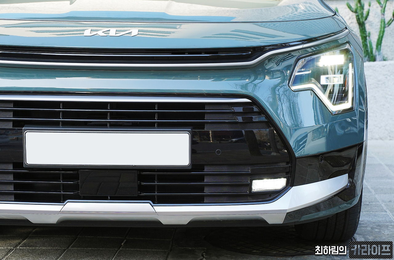 슬림한 라디에이터 그릴과 그 아래 큼지막하게 자리 잡은 에어 인테이크, 각을 중시한 LED 헤드램프와 심장박동 그래프에서 영감을 얻은 LED 주간주행등, 범퍼 하단부에 날렵하게 입체적으로 자리한 스키드 플레이트 등 시선을 끄는 디테일이 많다. 라디에이터 그릴 하단, 에어 인테이크 상단과 하단을 실버 컬러로 보기 좋게 마무리했으며, 에어 인테이크 끝에 있는 직사각형 안개등은 쏘렌토에서 보던 것과 같다.
