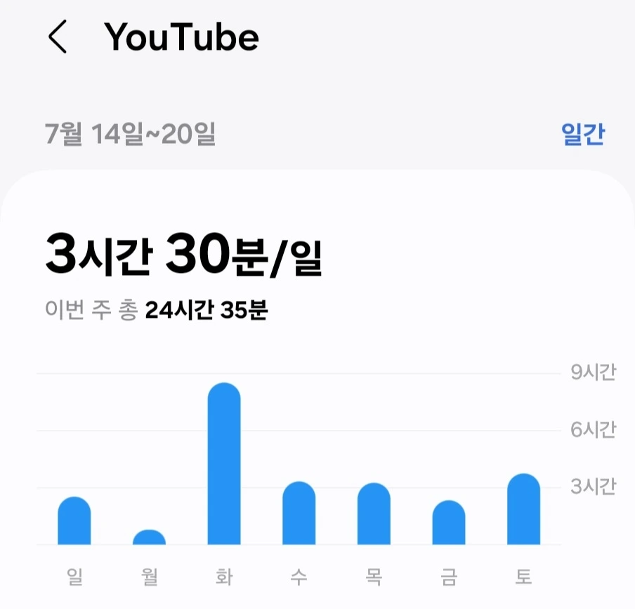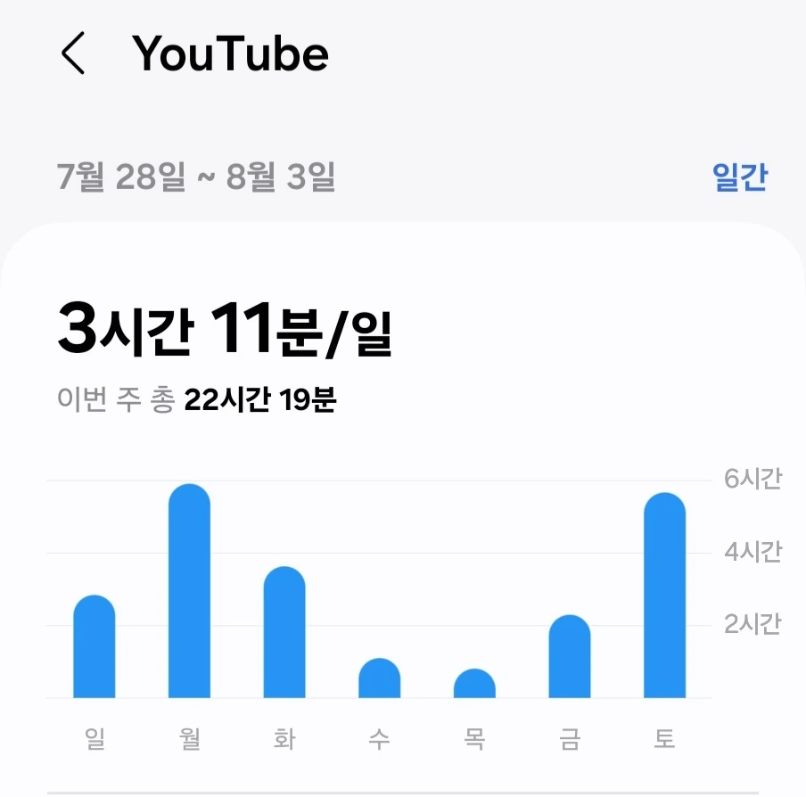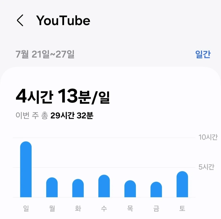 지난 한달간의 기록들을 보았는데 처참했다. 특이한 것은 매주 한번씩은 8시간이나 되는 시간을 유튜브에 쏟았던 것이였다..
