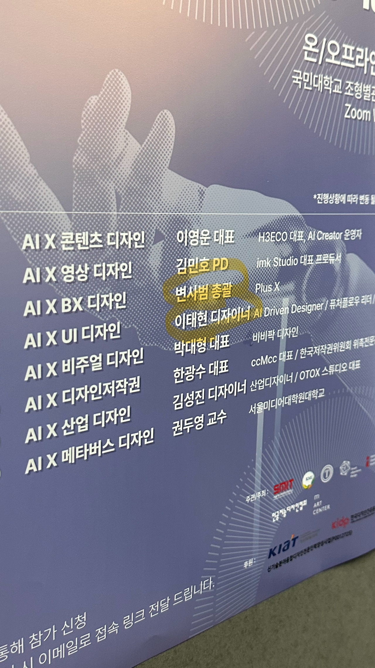 "국민대 디자인 대학원에서 플러스엑스 변사범 디렉터님과 AI UX 강연을 진행했습니다."