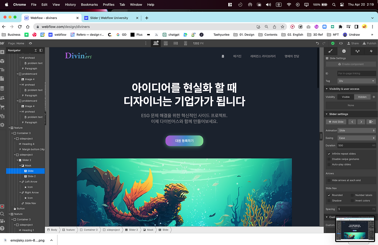 디자이너는 예술과 비즈니스 사이에서 균형을 잡아야 하는 어려움에 직면한다. 이로 인해 자신의 작품으로 수익을 창출하는 데 어려움을 겪거나 문제해결 자체에 집중하지 못하는 경우가 생긴다. (내가 그렇다) 이에 대응하기 위해 디자이너를 위한 ESG 사이드 프로젝트 커뮤니티인 Diviners사이트를 내일 오픈한다.