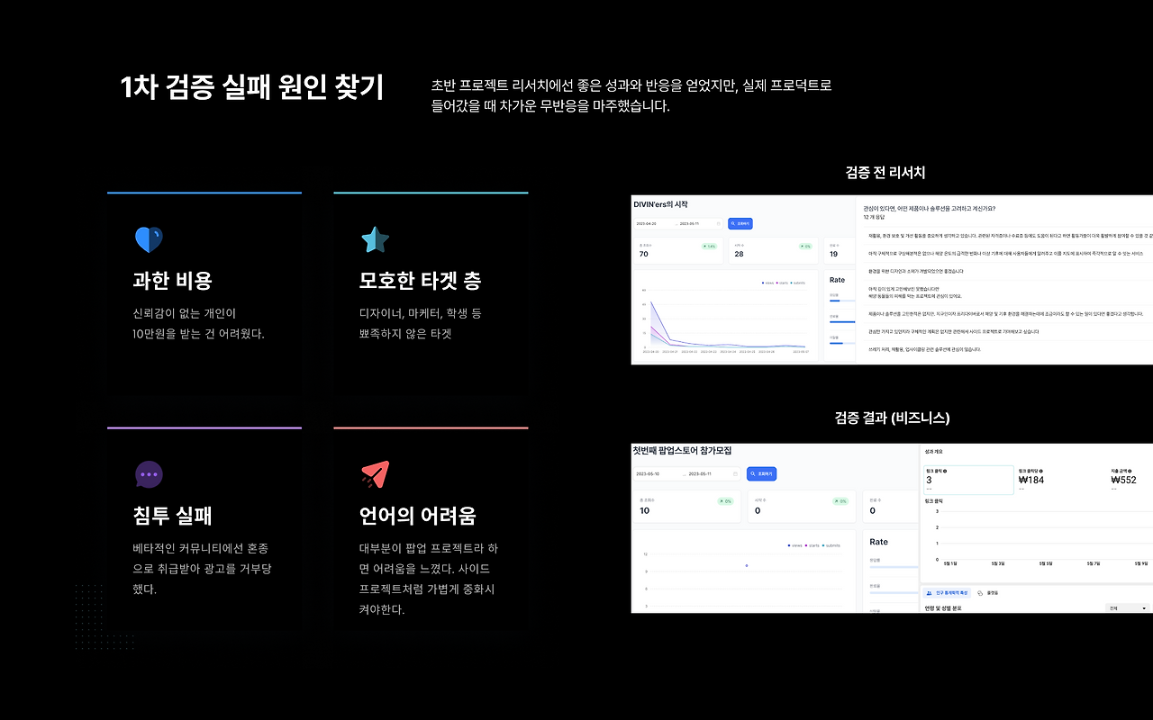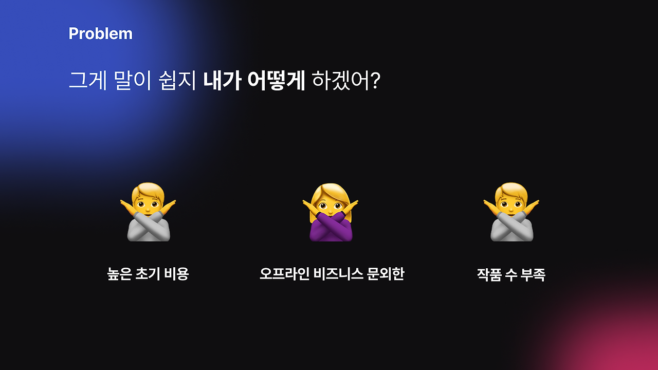 라는 이야기로 끝나면 좋겠지만 디자인 커뮤니티와 인스타 광고까지 태우고 총 0명이 지원했다. 뭔가 이상하다. 분명 이런 컨셉의 프로젝트를 리서치했을 땐 다들 좋다고 얼른 해달라고 장문의 글까지 남겨줬었는데 왜일까? 왜긴! 필요 없으니까! 차갑게 생각해 보자.