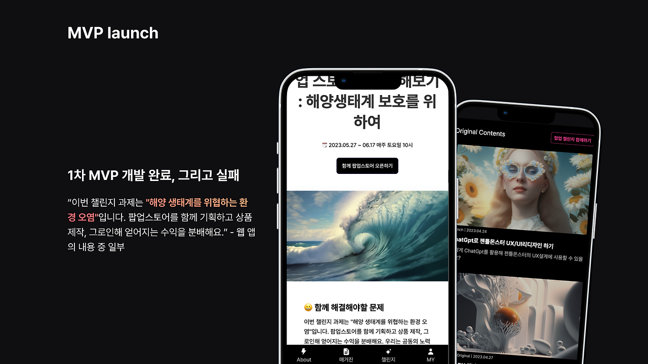 그렇게 부푼 꿈을 안고 1차 MVP와 해양생태계를 구하겠다는 일념으로 프로덕트를 런칭했다. "인당 10만 원에 팝업스토어를 오픈하는 경험을 할 수 있어요! 원래는 얼마나 비싼데요 어서 오세요~" 총 1000명이 모였고 어찌 감당할지 몰라서 머리가 아팠다... 이렇게 많은 돈을 벌면 어쩌잔 거야 이태현.