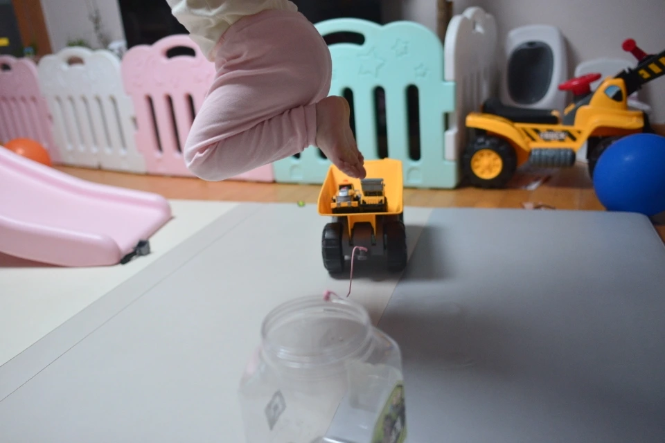 마스크 끈의 기본 용도는 마스크의 안전한 보관이다. 허나 아이들은 이에 그치지 않고 낚싯대로 활용해 공룡 인형을 낚는다거나 높이뛰기 용도로 재해석하고 있다. 불과 1~2년 전만 하더라도 잘 걷지도 못해 이리저리 부딪히고 다쳤던 것에 비하면 실로 위대한 진화다.