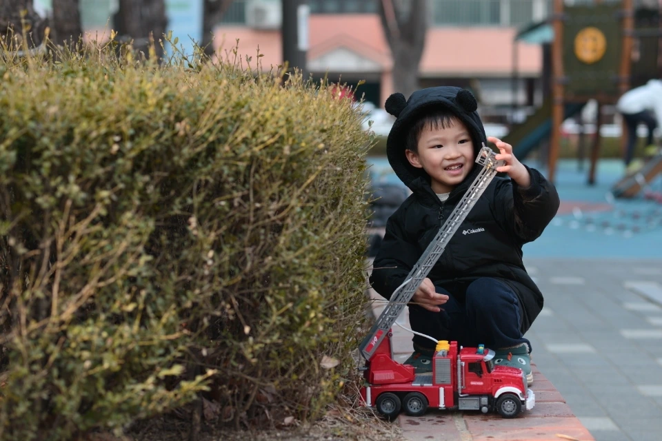 아이가 칭찬 스티커를 가득 모아 소방차를 사주었다. 장난감 코너에서 비교적 가격이 저렴한 제품을 선택해준 아들이 고마웠다.