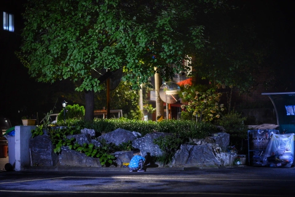 화단의 흙을 파내어 공사를 시작한다. 엄마가 저녁 약속 모임이 있어 늦은 시간까지 집에 들어오지 않았다. 엄마의 부재는 아이에게 불안일 수도 축제일 수도 있다. 마음가짐에 따라