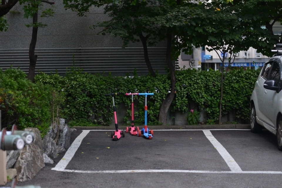 '주차 자리 있네' 하고 가까이 가면 경차 또는 킥보드가 주차되어 있다.
