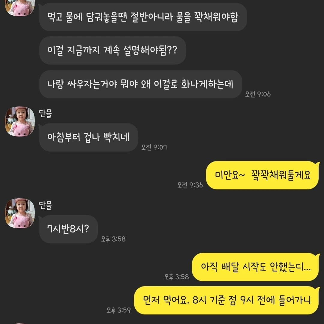 음식을 다 먹은 후 그릇에 물을 오리처럼 채워야 한다. 메모! 직접 아침을 챙겨먹고 그릇에 물을 충분히 채우지 않아 진돗개가 짖는다. 상황 발생!