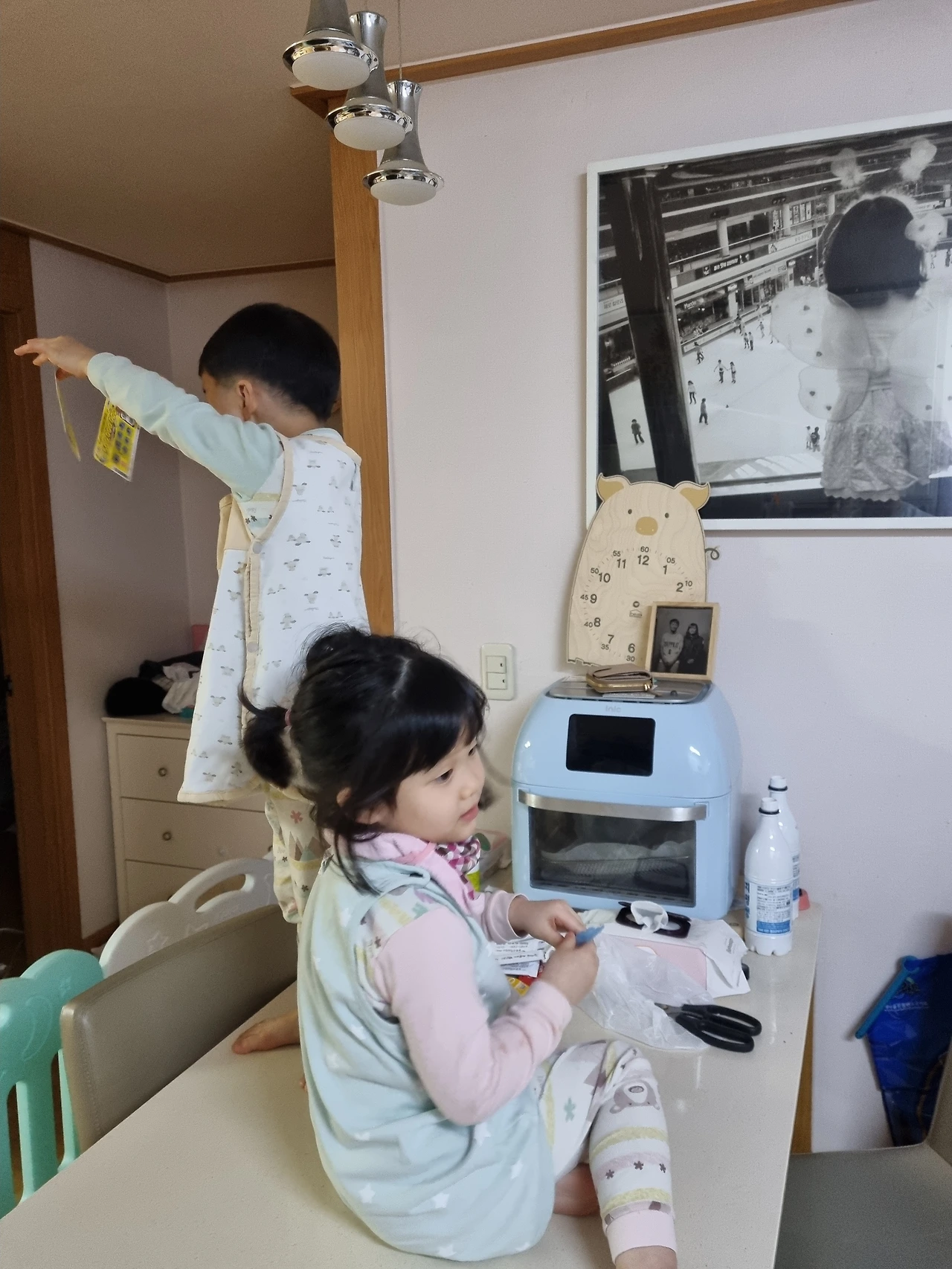 막걸리 두 병을 비우고 들어간 아내의 빈자리에 아내의 희망 2천원, 5천원 당첨 복권을 아빠의 희망 아들이 바닥에 뿌리고 있다. 딸은 머리카락을 자르고 만 원 어치 귀여워졌다.