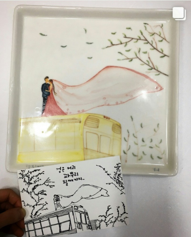 이윽고 짐을 풀고, 기다렸다는 듯이 서로 선물을 꺼내 주고받는다. 울 딸 친구가 직접 그리고 구운 접시, 내가 울 딸 부부를 위해 그린 그림, 울 딸이 엄마인 내게 주려고 한 땀 한 땀 바느질해서 만든 퀄트 가방 등이다. 정성이 가득 담긴 선물, 손수 만들고 그리고 구운 것들이라서 더욱 소중하다.