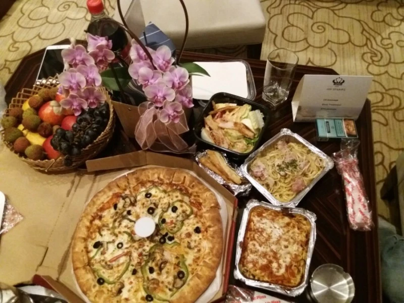 시간이 좀 늦어서 호텔 안에서 피자와 파스타를 시켜 저녁을 먹고 한참 이야기하다 씻고 잠자리에 든다. 중국여행 첫째 날이다.
