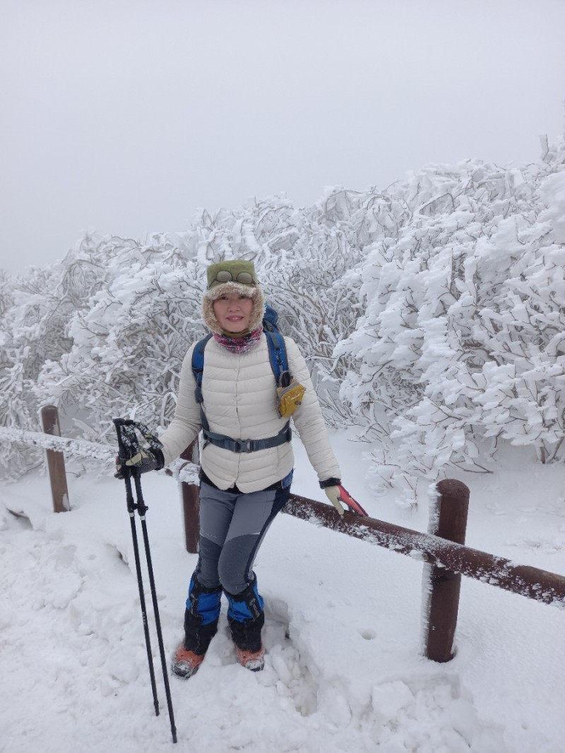 덕분에 뒤도 돌아보며 위도 쳐다보며 멋진 눈꽃을 담는다. 물론 내 사진도 부탁하니 기꺼이 찍어준다. 고맙다.