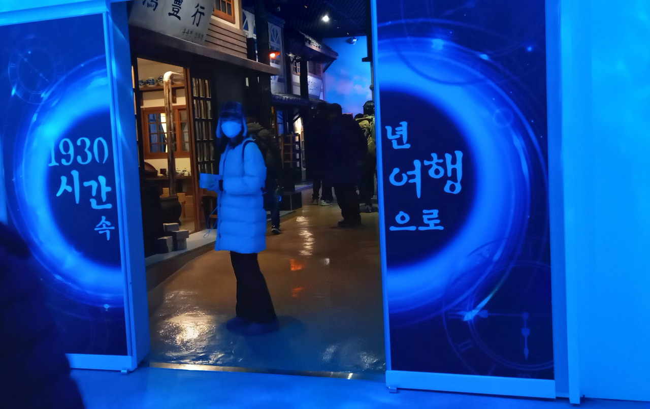 군산 근대역사박물관에 가서 1930년대 과거의 역사 속으로 시간여행을 떠난다. 1층 로비 벽에 "역사를 잊은 민족에게 미래는 없다"라는 글귀가 새겨져 있다.