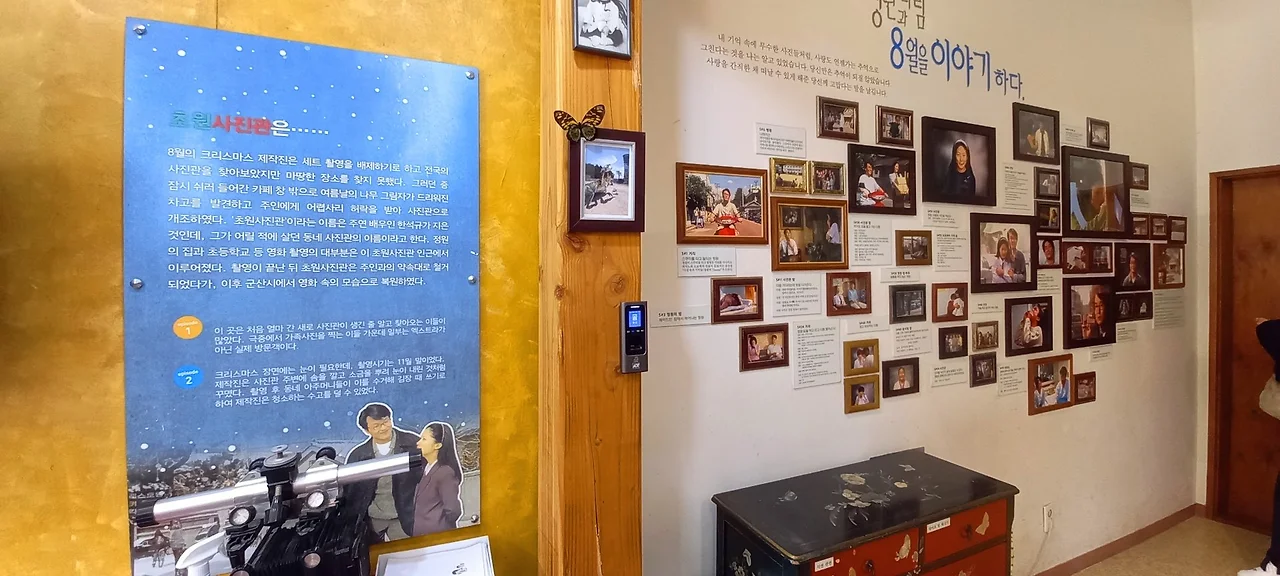영화 <8월의 크리스마스> 촬영지 <초원사진관>은 그야말로 옛날 사진관이다. 나에게도 이런 사진관에서 찍은 사진이 몇 장 있다. 아주 어렸을 때 찍은 것이다. 나는 아쉽게도 영화 <8월의 크리스마스>를 보지 못했다. 내가 좋아하는 한석규 배우가 니오는 영화라는데, 1998년 개봉작이다. 그때는 내가 영화를 즐겨보던 때가 아니다. 영화 스토리는주인공 정원(한석규 분)이 불치병을 앓고 있는데 서울변두리 사진관에서 담담하게 삶을 정리하고 있다. 그러던 중 정원은 주차단속원인 다림(심은하 분)을 만나 사랑을 느끼게 되고 다림 역시 정원에게 호감을 갖는다. 그런데 사진관은 늘 문이 닫혀 있다. 어느 날 보니 사진관에 다림의 사진이 걸려있다. 애잔하고 슬픈 영화이다. 이루어질 수 없는 사랑, 그래서 더 아름다운 사랑 이야기이다.