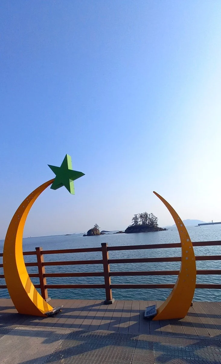 근대역사박물관에서 다시 차로 50여 분 이동해서 무녀도로 간다. 가는 도중에 군산 바다가 그림처럼 펼쳐진다. 저기가 선유도라고 가이드님이 얘기해 준다. 선유도는 산 위에 올라가서 바다를 쭈욱 내려다 본 적이 있다. 풍경이 너무나 아름다워서 '신선들이 논다'는 뜻의 '선유도'라 이름을 붙였을 것이다. 다른 때는 주로 선유도를 연계해서 갔다는데, 이번에는 무녀도를 가게 된다고 한다. 그래도 괜찮다. 나는 무녀도를 안 가봤기 때문에 더 좋다.
