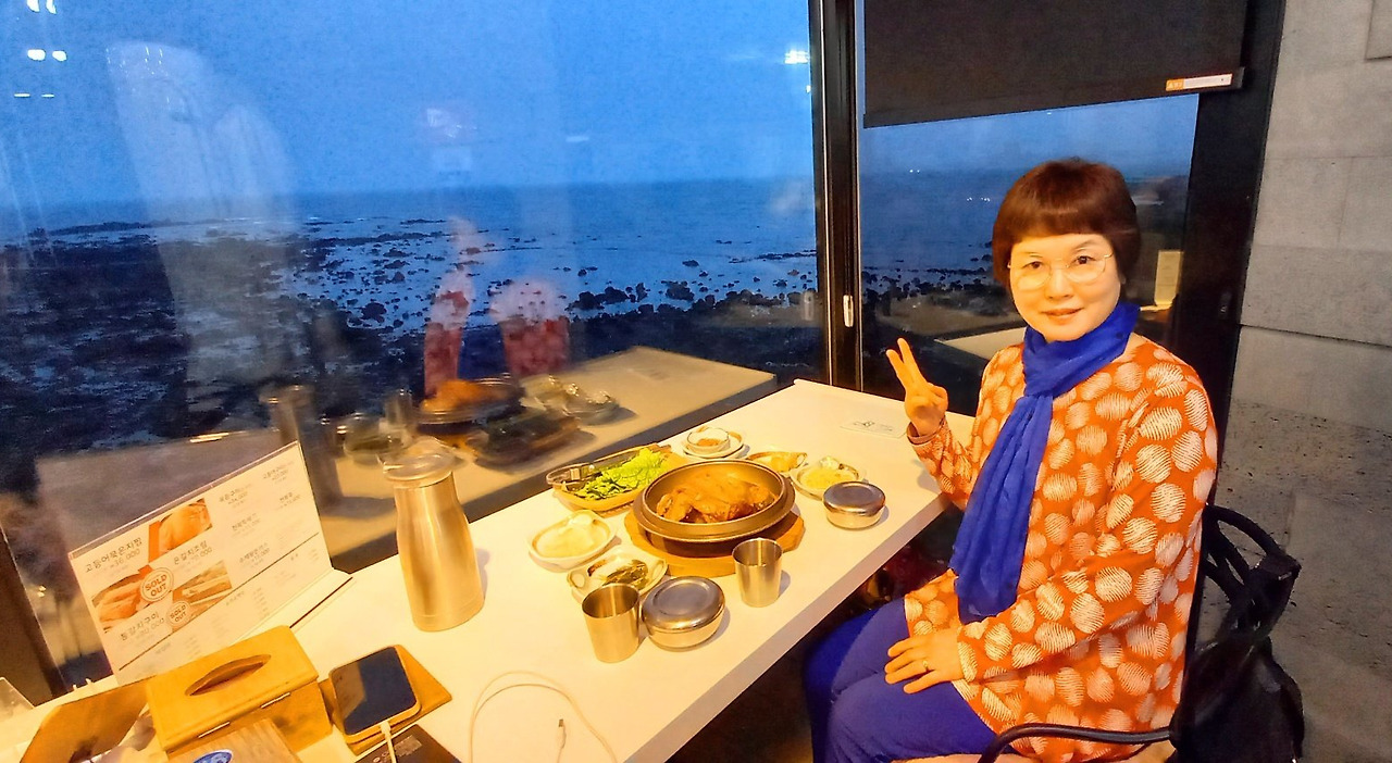 울 딸이랑 둘이서 여유 있게 앉아서 바다를 바라보며 저녁식사를 한다. 고등어와 밥을 넣고 상추쌈을 해서 먹으니 별미다. 배가 너무 불러서 아까운 음식을 남길 수밖에 없다. 후식으로는 커피를 마시러 가자는데 나는 저녁에 커피를 마시면 잠이 안 와서 안 마신다고 했다.