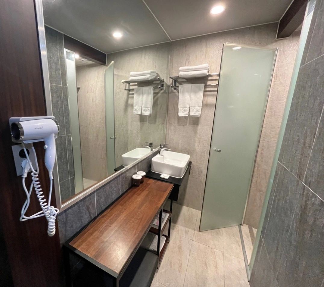 카카오택시를 잡아서 제주 위드호텔로 온다. 트윈 침대 1개, 싱글 침대 1개에다 화장실, 세면실, 샤워실, 화장대, 옷장이 모두 따로 되어 있어서 엄청 편리한 호텔이다. 울 딸이 예약했다고 해서 인터넷에서 찾아보니 깨끗하고 좋은데 조망은 별로라고 하는데, 우리가 이틀 동안 묵는 방은 13층이고, 조망이 꽤 좋은 편이다. 드림 타워 "HAPPY 2023"이 보이는 곳이다. 밤에는 무지개 불빛이 화려하다. 이보다 더 좋은 조망이 어디 있으랴!