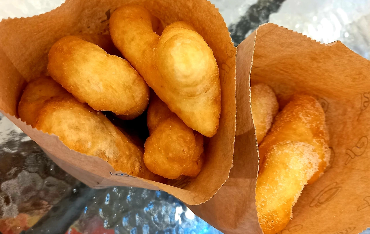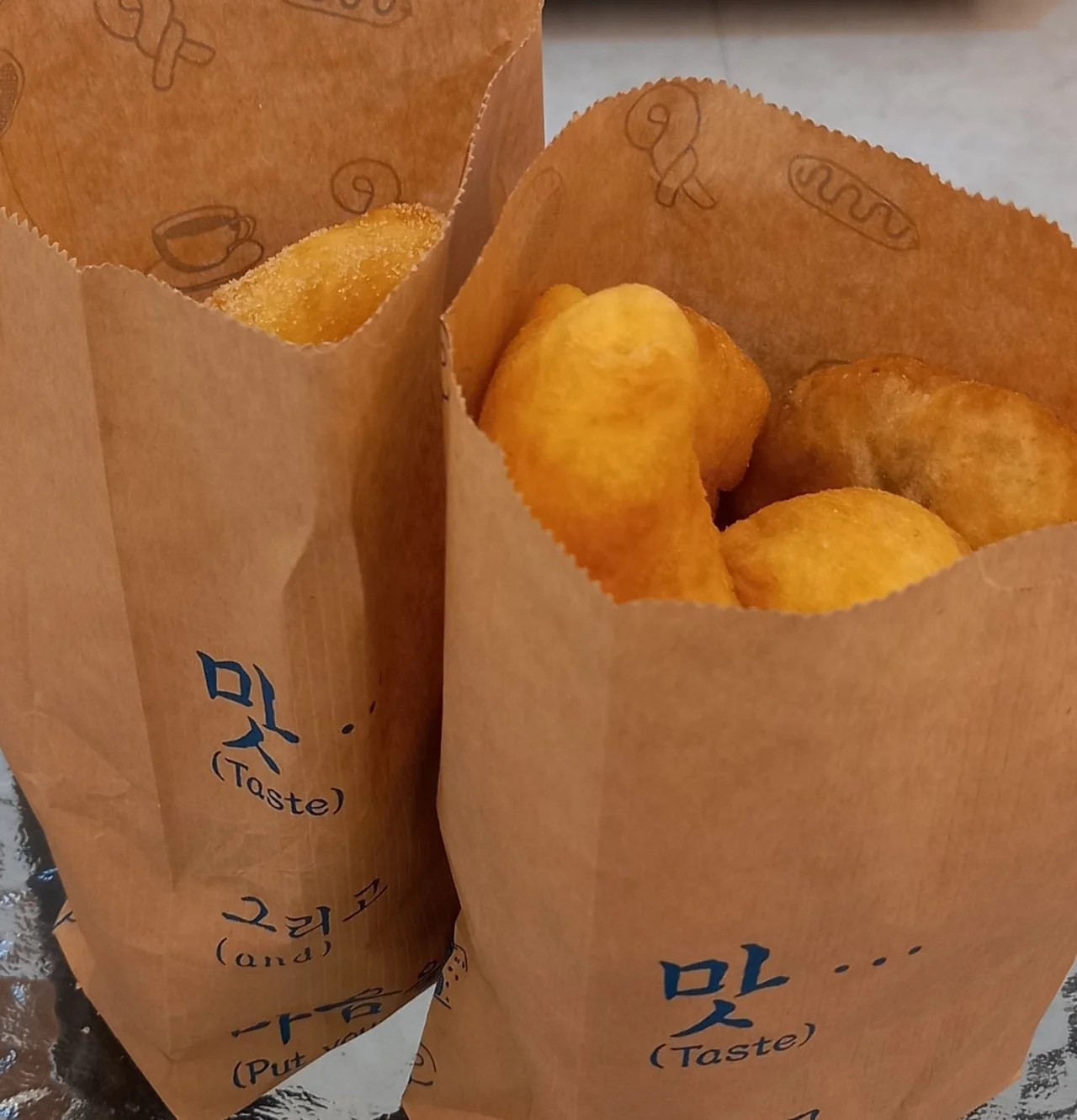 가게에 들어서니 도넛이 다 팔리고 몇 개 안 남아서 아쉬워하니 뭐든 말만 하란다. 즉석 만들어서 튀겨줄 수 있단다. 그래서 6천 원짜리 도넛 세트 1개를 산다. 아저씨는 손놀림이 엄청 빠르다. 금세 반죽을 잘라 찹쌀 도넛을 만들어서 기름에 튀겨낸다.