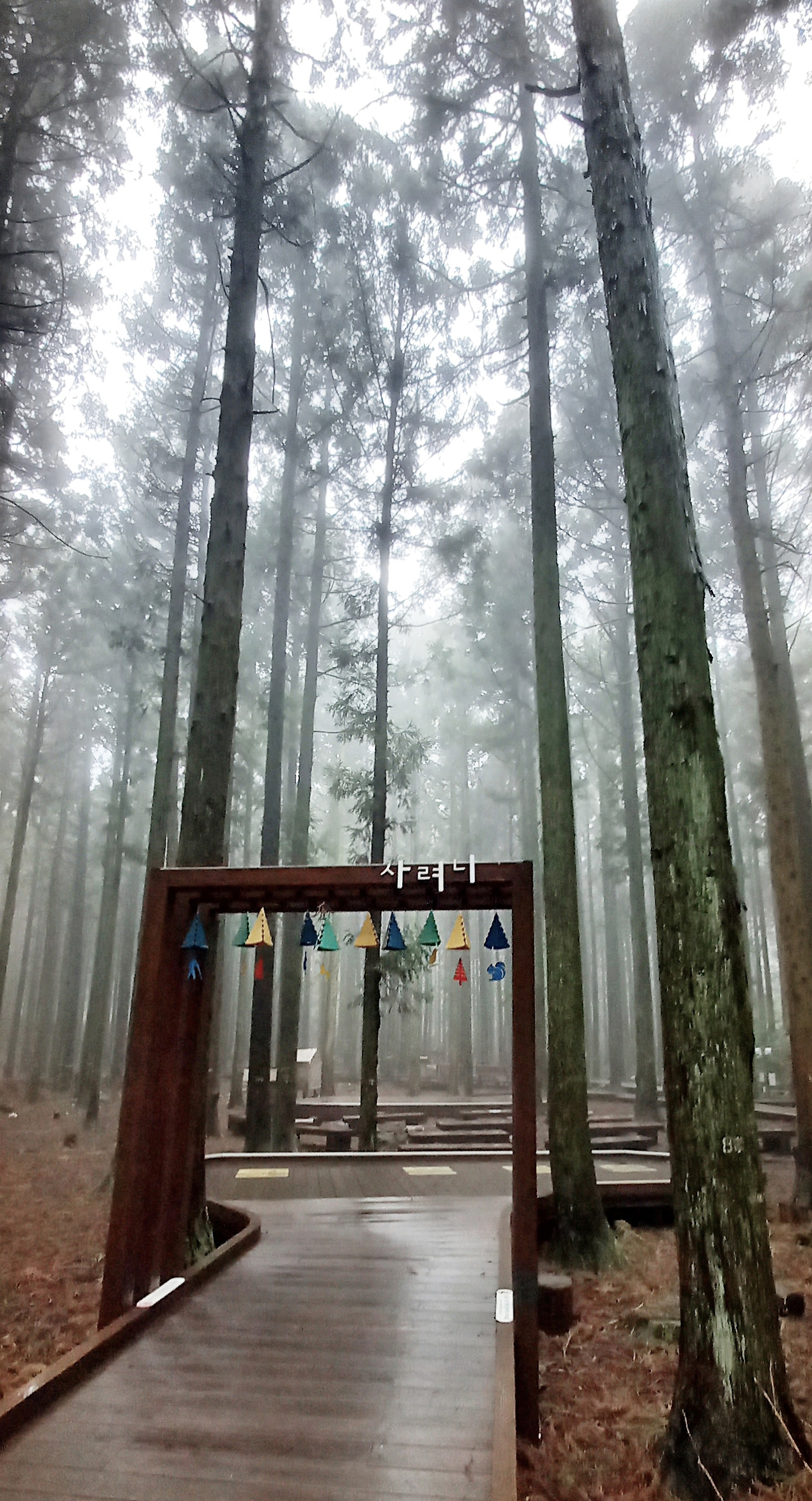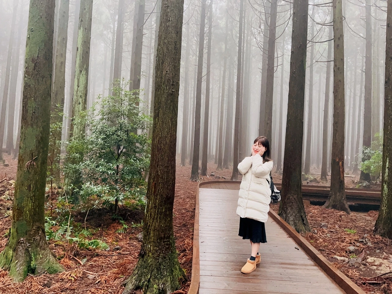 사려니숲길은 이전에 졸업여행 할 때 걸어봤는데, 그때는 날씨가 아주 맑았다. 오늘은 운무가 가득해서 더욱 신비로운 숲길이다.