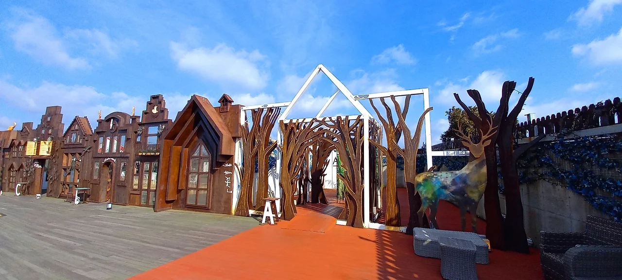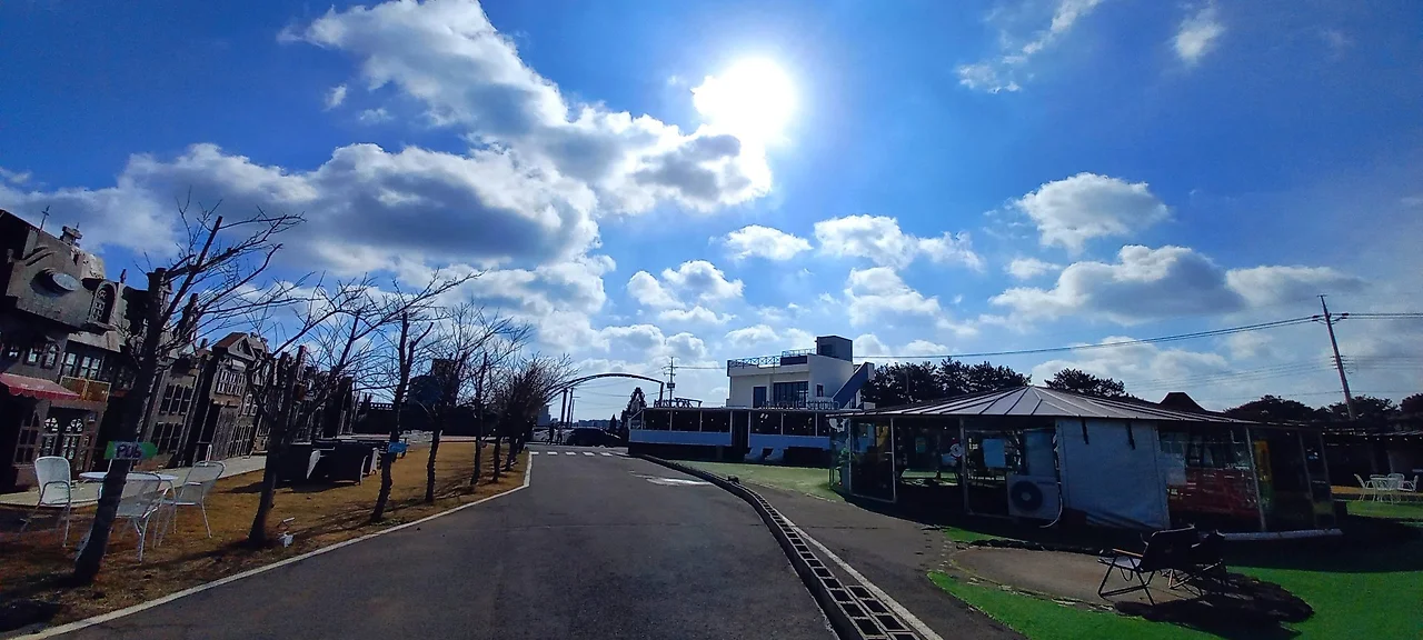 드르쿰다 해변에서 나오면서 보는 길 풍경이 해를 품고 있어서 더욱 묘한 분위기다. 저 풍경도 한폭의 그림이다! 왼쪽 길가 쪽 성산 스튜디오를 둘러본다. 방마다 다양한 세트로 구성이 되어 있다. 인디언 집, 거울 집 등 재미난 곳이 많다. 일일이 사진을 찍으면 꽤 시간이 소요될 텐데 우리는 들여다만 보고 사진은 안 찍는다.