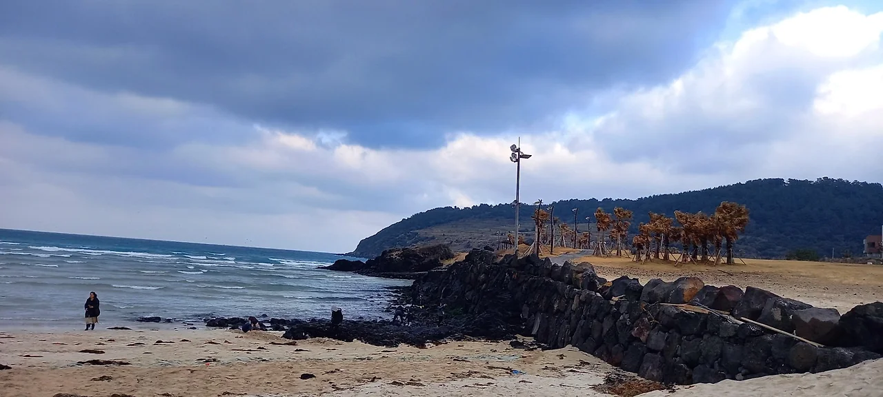 함덕해수욕장은 여름에는 발 디딜 틈이 없이 사람들이 가득하겠다. 겨울에 오면 한가로운 모습이 좋다. 바다를 온통 차지하고 걸어볼 수 있으니 말이다. 울 딸은 며칠 전에 친구랑 와 보았다고 한다. 먼저 와보고 좋아서 엄마에게 소개하는 것이다.