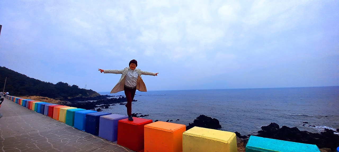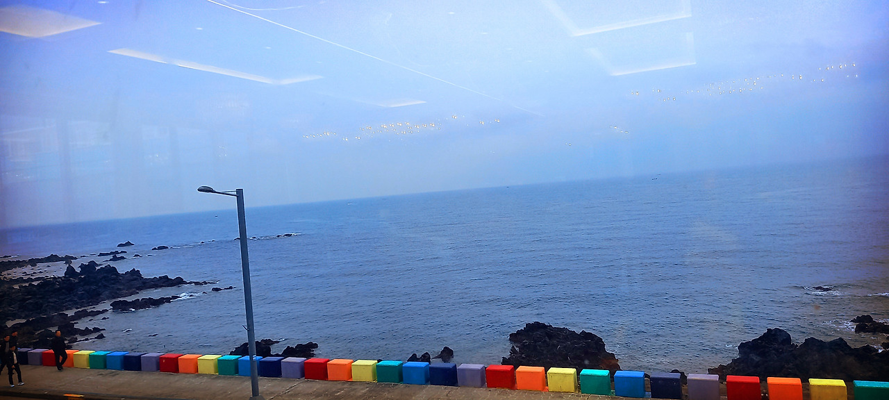 울 딸이 친구랑 갔다 온 <무지개해안도로>와 그 옆에 있는 <나모나모> 카페에 들렀다 가야 한다며 8시쯤 호텔에서 체크아웃하잔다. 그래서 좋다며 준비한다. 카카오택시가 잘 되어 있어서 불러서 타고 이동한다. 멀지 않아서 금방 간다.