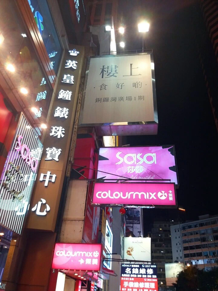 저녁 야경 보러 기는 길(좌 : 싸싸와 컬러믹스는 홍콩에서 유명한 화장품 / 중 : 타임스퀘어 / 우 : 멋진 건물 야경)