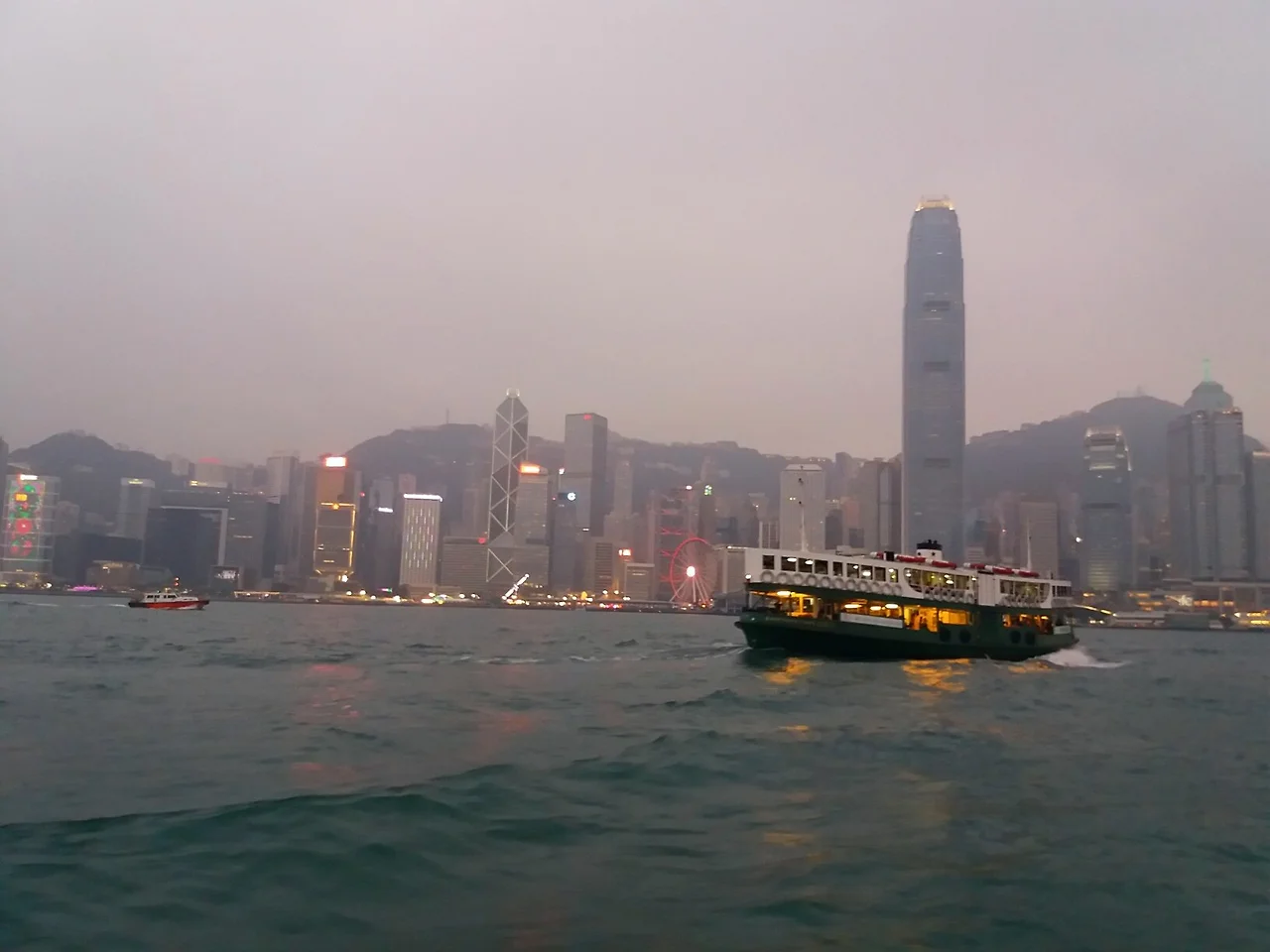 홍콩섬 센트럴에서 《스타 페리》를 타고 야경을 보면서 구룡섬 침사추이로 이동한다. 《스타 페리》는 1888년 12월부터 운행을 시작했단다. 과거에 사용하던 배를 지금도 사용하고 있단다.