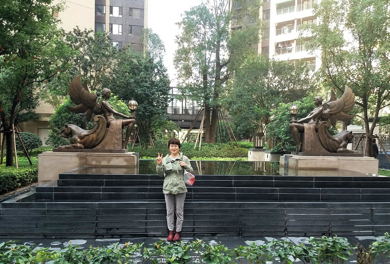 오늘은 먼저 아파트 정원을 산책한다. 이쁜 조각들이 정원 구석구석에 있어서 멋스럽다. 아기천사도 분수대 양 옆으로 날개를 펴고 있다. 언약궤 위 두 케루빔처럼.