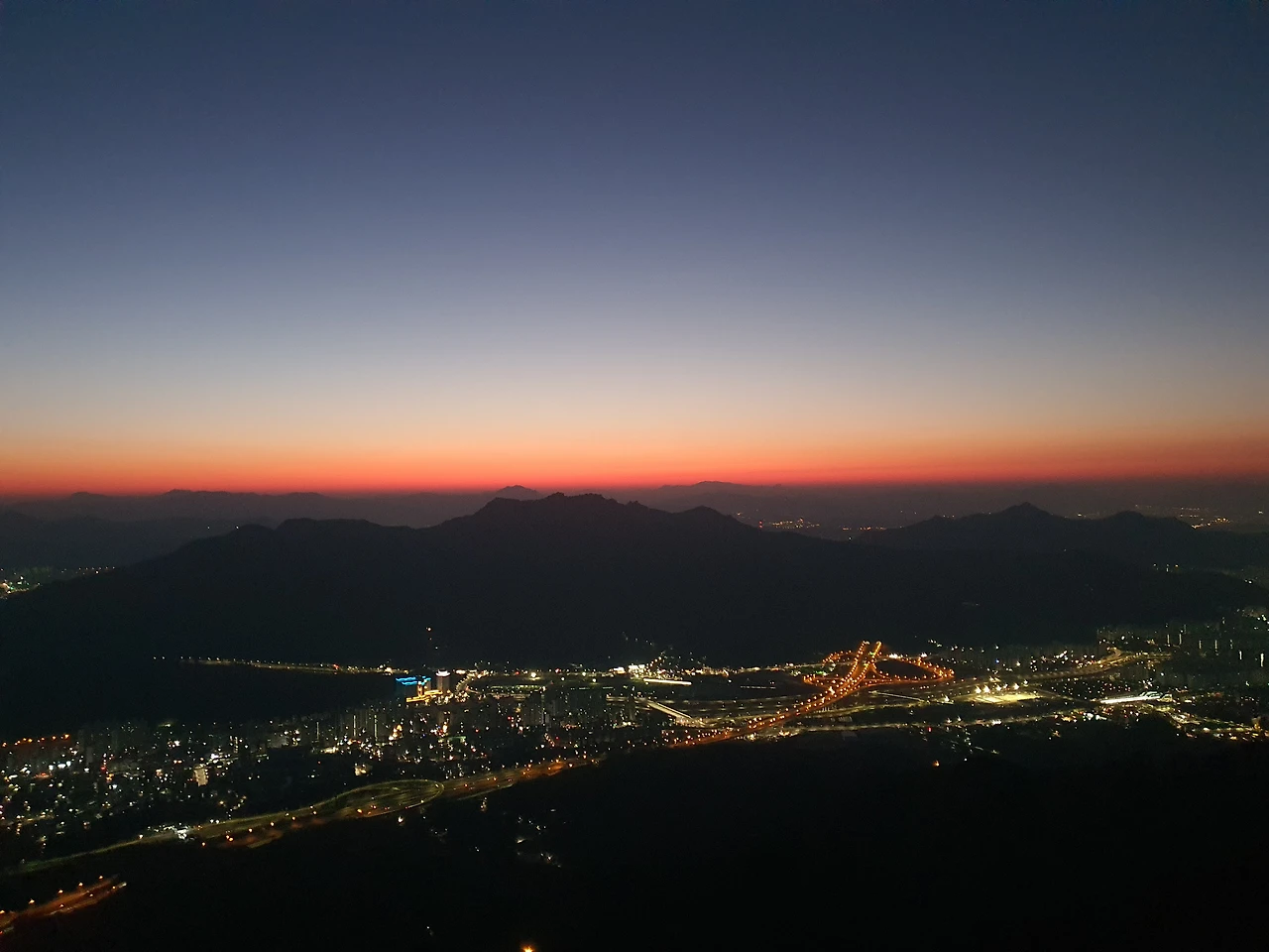 도봉산 사패능선에서 바라본 수락산과 불암산 쪽 새벽 여명