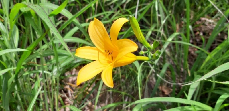 군자산은 하산길이 완전 너덜지대이고 엄청 길다. 한 2km 정도를 걸어야 하는데 시간이 거의 2시간 가까이 돌자갈 지대를 걸어야 한다. 미끌미끌 가파른 곳도 많다. 하산길 너덜길 징글징글하다. 그렇지만 보기 드문 야생화도 만날 수 있다. 큰까치수염, 민둥갈퀴, 돌양지꽃, 바위채송화, 원추리, 산수국, 솔나리, 이름을 불러본다. 산길에서 만나는 수줍은 야생화들 덕분에 힘든 것을 잊는다.