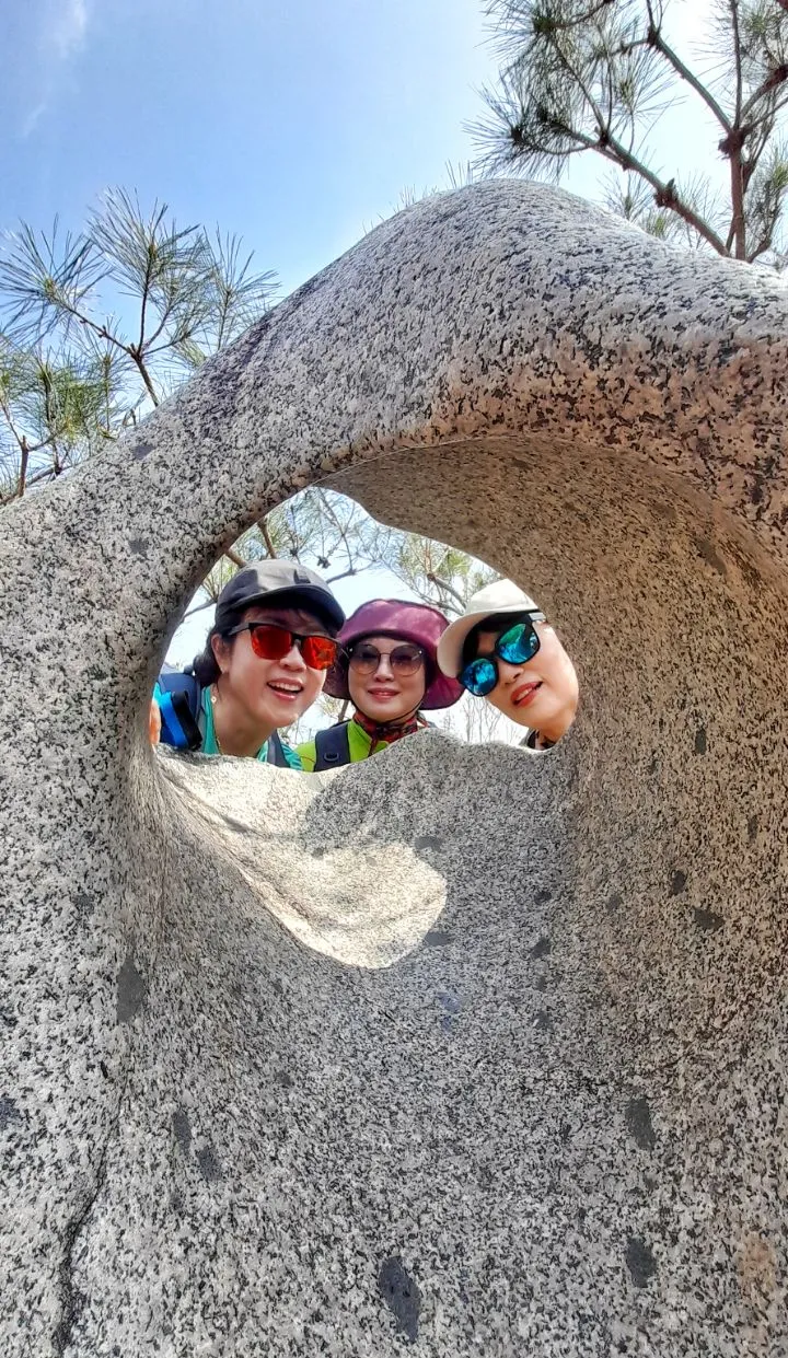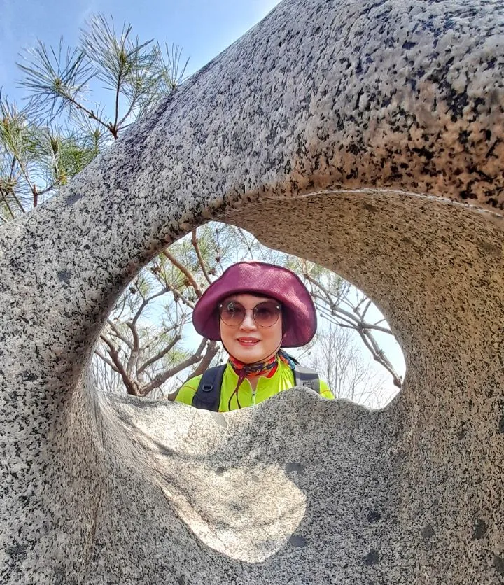 도덕정 근처에서 한참 놀다 간다. 도덕정이 있는 돌계단 여기도 예쁘고 저기 정자에서 내려가는 나무계단 아래 구멍 뚫린 신기한 조각 같은 돌이 예쁘다. 거기서 연출 사진을 찍어보니 완전 작품이다.
