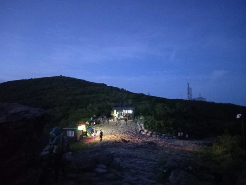 노고단 고개에서 시간을 조금 보내면서 여명이 밝아오는 걸 즐긴다.