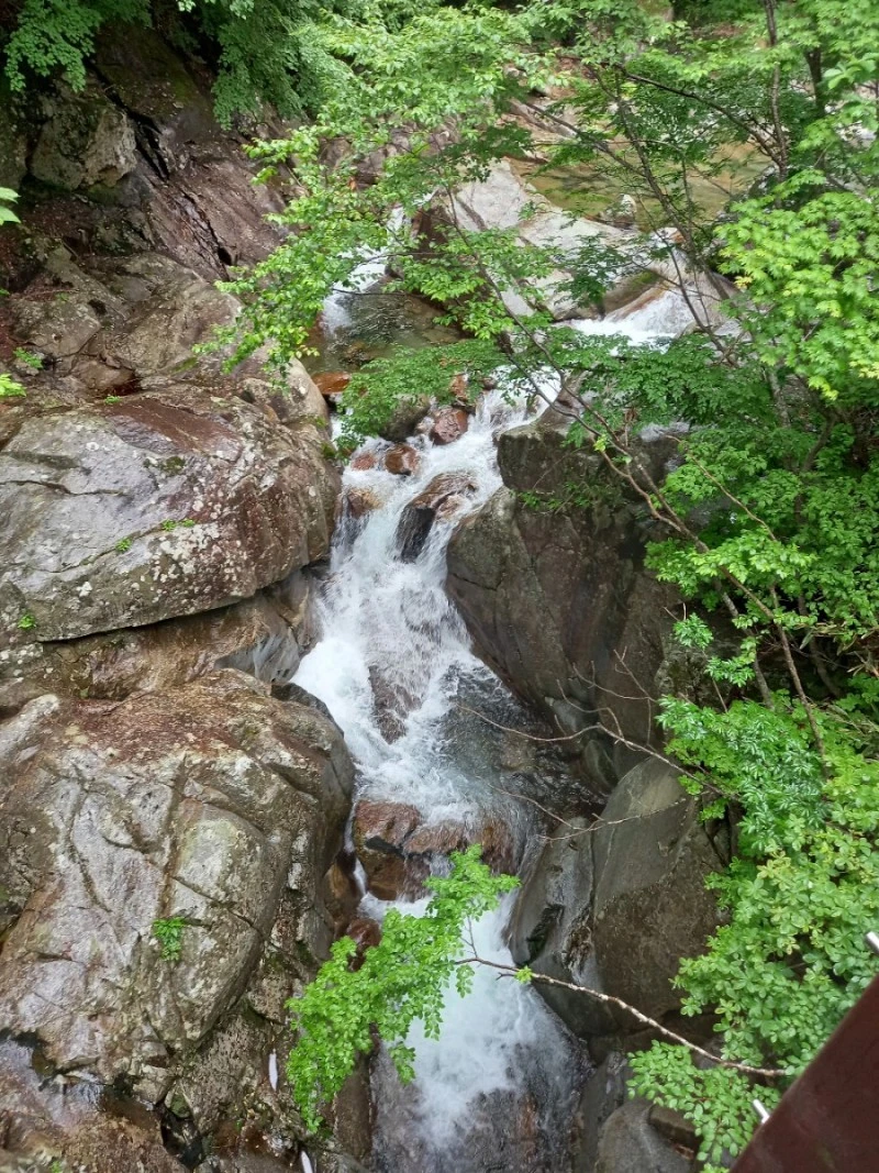 하산하면서 2호차에 타고 오신 분과 동행했다. 나는 1호차에 타고 왔지만 산에서는 누구라도 만날 수 있으니까. 새벽에 플래시를 켜고 폰카메라를 썼더니 배터리가 빨리 아웃되어서 할 수 없이 동행한 분의 폰을 신세 졌다. 비 오는 날 빗소리 듣는 것을 좋아해서 별명도 그 느낌이 나게 지으셨다는 산우님이시다. 도란도란 동행인이 있어 비교적 긴 뱀사골 하산길이 지루하지 않고 금방 갔다.