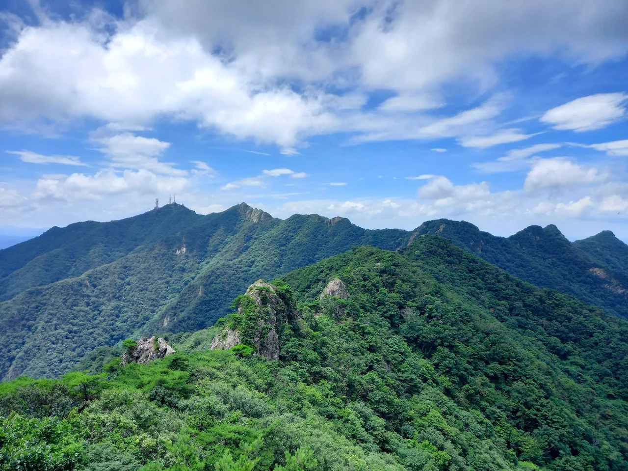 계룡산 관음봉에서 100대 명산 51번째 인증숏 찍는다. 비 소식이 있었지만 비는 안 오고 날씨는 청명하게 좋고 바람도 불어 선선해서 여름에도 계룡산 산행은 더할 나위 없이 좋다.