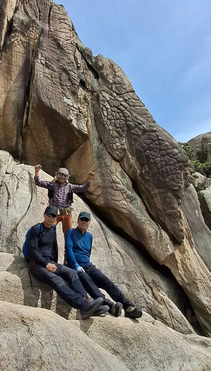 함산 한 산우님들은 악어바위 가까이 올라가서 암릉 위에서 사진을 찍는데 나는 무서워서 조금 아래쪽까지만 올라가서 찍는다.