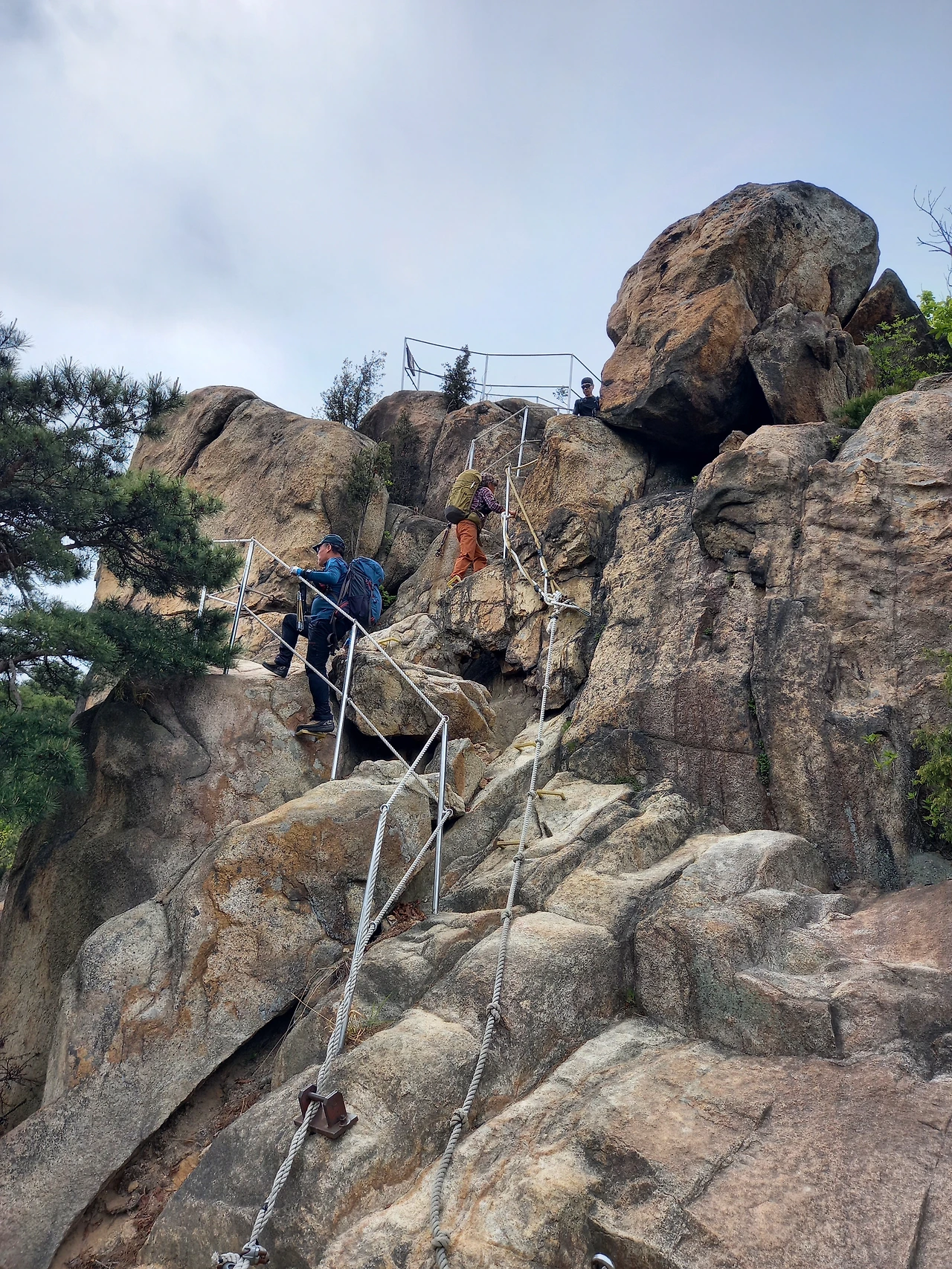 암릉을 탈 때는 스틱이 영 불편해 접으면 좋은데, 백설야 님이 들어주셔서 두 손으로 로프를 잡고 가뿐하게 오른다.