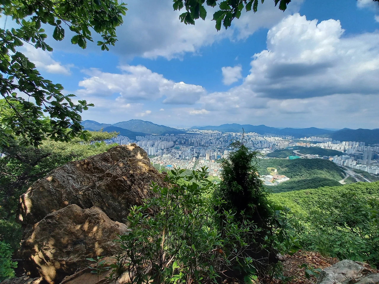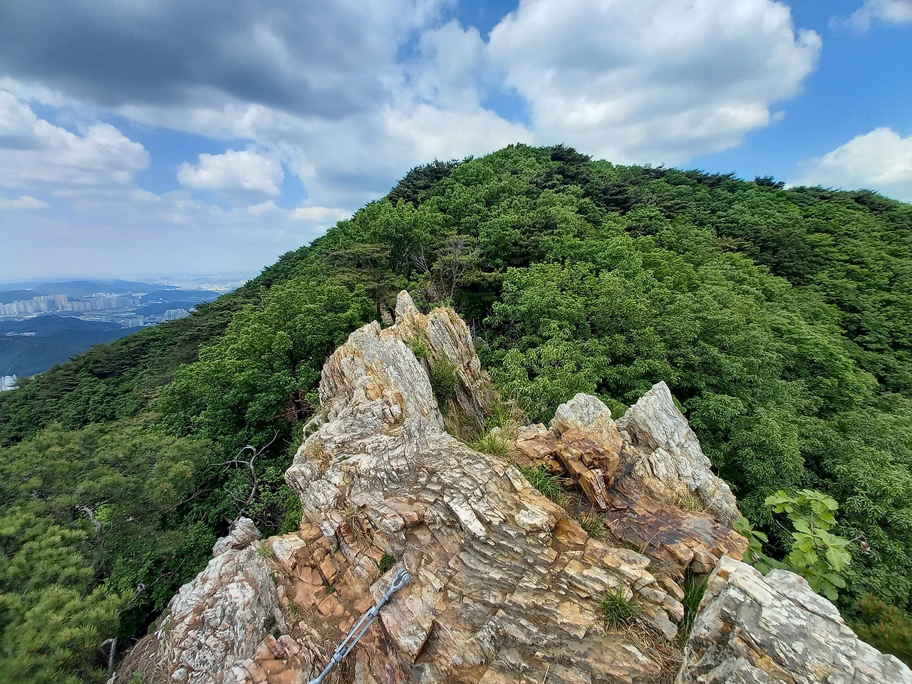 하산길은 낙엽길, 암릉길, 데크길, 초록 숲길, 변화가 있어서 재미가 있다. 군데군데 암릉 조망터도 있어서 풍경 감상을 하며 사진을 남긴다.